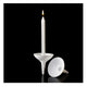These paper drip protectors are made of heavy, unprinted, white card stock. They are designed to fit 3/8" to 1/2" diameter candles.