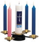 Wrought iron with spikes (for pillar candles) and solid brass bobeches.
