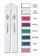 This polyester chasuble features a cross emblem with a wheat stalk intersecting its left arm. The lower portion of the vertical arm features the Greek letters alpha and omega, which symbolize the eternal presence of God. The garment is available in eight different colors to cover each of the liturgical seasons. The polyester material makes the chasuble lightweight and breezy while lending durability and wrinkle resistance.