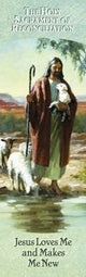 Remind churchgoers of the beauty of reconciliation to Christ with this bookmark. The front features an image of Jesus surrounded by children, along with the words, "The Holy Sacrament of Reconciliation." We are reminded of Jesus' power with the words: "Jesus loves me and makes me new." The back records a prayer of contrition. This bookmark makes an ideal gift and keepsake.