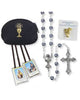 R553G 5MM WHITE PEARL/PINK ...CBS45" BLACK ENAMELED CRUCIFIX WITH BLACK GLASS COMMUNION ROSARY