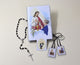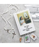 This Vinyl Wallet Set for girls includes a Cathedral Edition First Mass Book, laminated scapular, enamel pin, and chain rosary, with a clear wallet holder.