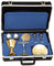 18˝ x 12˝ x 5˝ sturdy molded case. 6˝H. chalice (8 oz. cap.), 5-1⁄2˝ dia. paten, 3-1⁄2˝ dia. host box (75 host cap.), two 4 oz. glass bottles, two 10-hour glasses with candles. Compartments for vestments and missal. 24k gold plated.