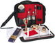 12-1⁄2˝ x 9-1⁄2˝ x 4˝ case, 5-1⁄4˝H. chalice (3 oz. cap.), 3-7⁄8˝ dia. paten, 3-1⁄8˝ dia. host box (40 host cap.), 5˝ sprinkler, 1˝ dia. oil stock, 1 oz. cruets, 4˝H. crucifix, 58˝ x 2˝ stole, two candles, altar, hand & finger cloths.