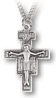 Saint Benedict round double sided medal-pendant. Solid .925 sterling silver. Saint Benedict is the protector against evil. Medal is die struck. Hand polished and engraved by New England Silversmiths. Dimensions:1.1" x 0.8" (28mm x 20mm) 24" Genuine rhodium plated endless curb chain. Made in USA. Deluxe velvet gift box.