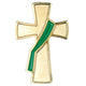 Catechist lapel pin, 1", gold plated with enameled colors, poly bag packaged.