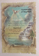 Two color certificates (50 per pad) in a 6" x 9 1/4" size. Quality paper with distictive symbolism gives each certificate a handsome appeareance. All lines are typewriter spaced for quick and easy handling.