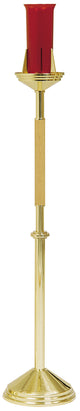 Solid brass and oak wood. 36˝H., 10-1⁄2˝ base, 11˝ dia. top plate.