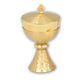 Crystal Cruets. 6-1/4"H., 3-1/2" dia. base, 6 oz. cap. Grape and leaf design on wine, pinwheel design on water. Pair