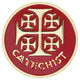 2 1/2" gold plated and enameled Usher pendant on a 33" blue cord. Poly Bagged.