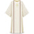 In Pius, 100% man‑made fibres. Dalmatic with galloon and embroidered cross in gold threads; with small dalmatic stole to be worn under the garment. Technical specifications Fabric Pius - 100% polyester Color Beige Length 53 " / 135 cm Width 63 " / 160 cm Collar Plain  Ships from Belgium please allow 3-12 weeks delivery. Federal tax # required.